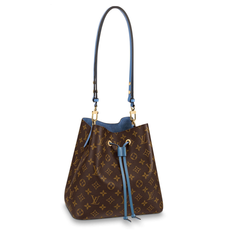 Designed in 1932 to transport bottles of Champagne, the Noe returns for Spring 17 as the NeoNoe, an on-trend bucket bag in supple Monogram canvas with colorful calf-leather accents and an adjustable strap that lengthens for a modern, cross-body carry.