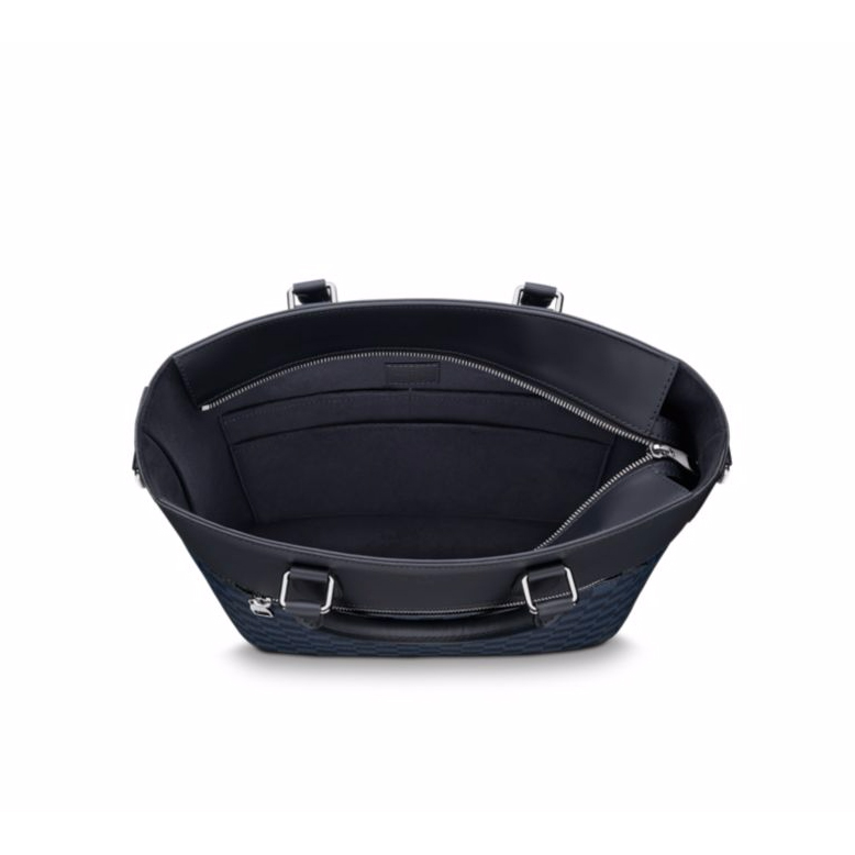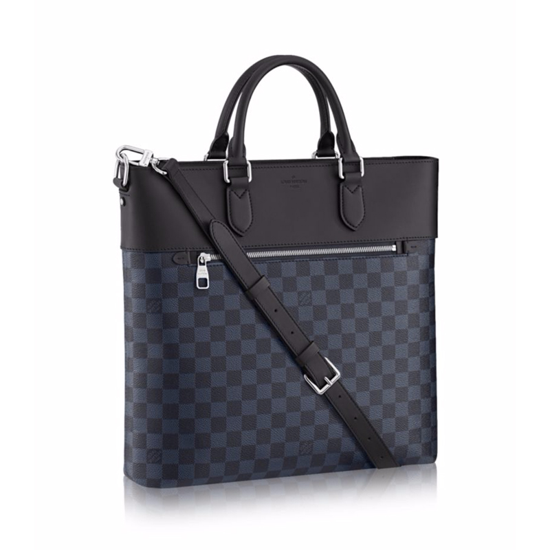 Fusing contemporary elegance with easy-going functionality, the Newport Tote is the ideal bag for the modern man on the go. The epitome of urban chic, this roomy tote, fashioned of iconic Damier Cobalt canvas and sturdy leather, has numerous inside pockets to carry all your everyday essentials. The top handles and adjustable (detachable) shoulder strap offer a choice of different carry options.