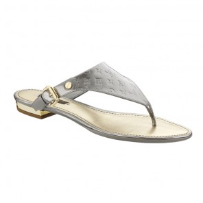 These casual chic thongs in the rich, glossy Colors of Louis Vuitton's cult Monogram Vernis coordinate perfectly with the leather goods line. They are signed with a golden plaque on the heel.
