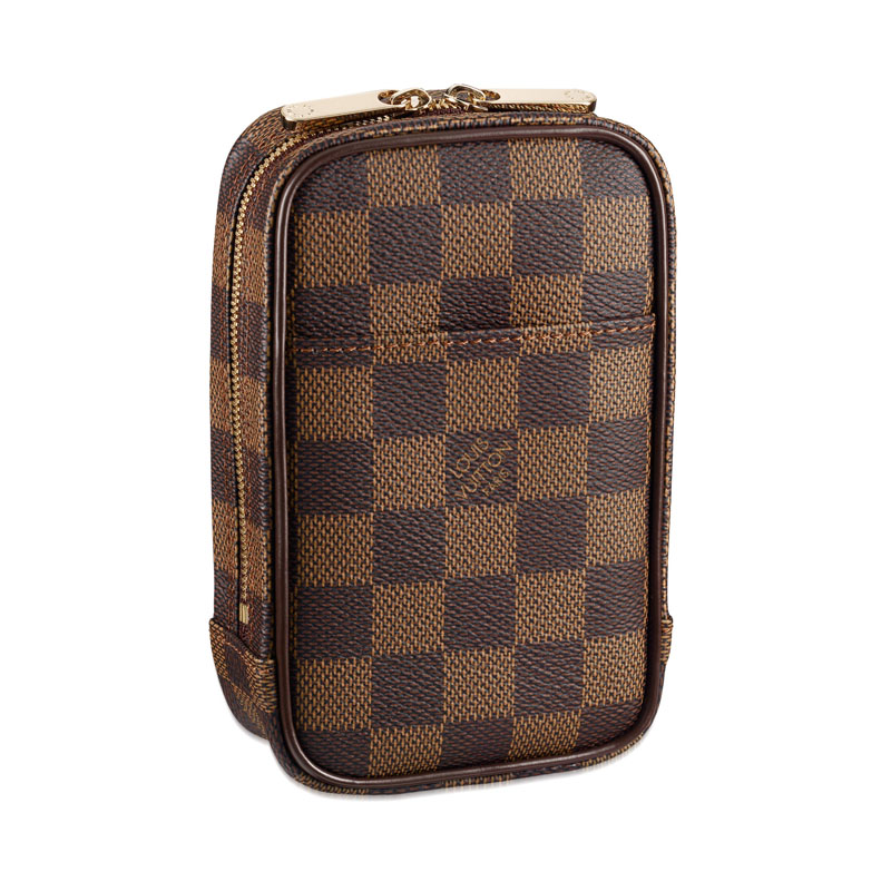 Ideal for carrying everyday hi-tech gadgets, the urban Damier canvas Okapi case is surprisingly spacious. This model can hold a Blackberry or a Nintendo DS Lite.