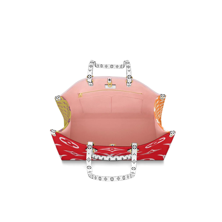 The aptly named Onthego tote bag goes shopping, to work or off for the weekend. With its ample capacity and oversized Monogram motif (contrasted with Mini Monogram trim) this modern carryall makes a punchy fashion statement. Articulated Toron handles and two shoulder straps ensure a comfortable carry, all day long.