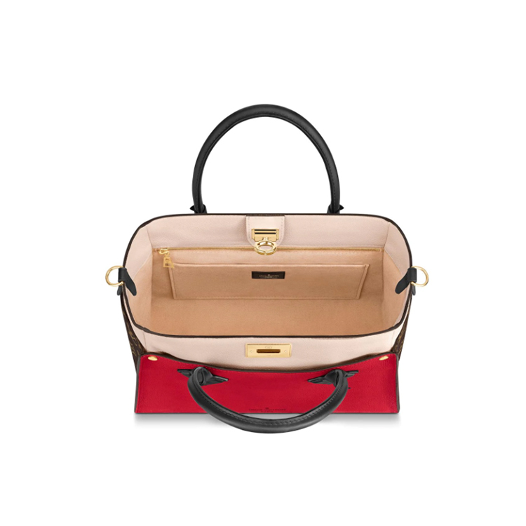 The On My Side tote bag is fashioned from an elegant combination of small-grained calf leather and emblematic Monogram canvas. The large outside pockets in contrasting canvas create a bag-in-a-bag look. The roomy interior can easily hold everything needed for a day at the office while the adjustable strap makes for practical cross-body carry.