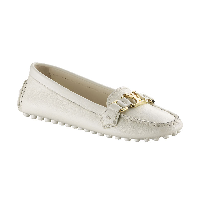 These elegant, feminine loafers in soft grained calf leather are discreetly signed with an LV initials accessory and sport an extremely supple rubber nub sole.