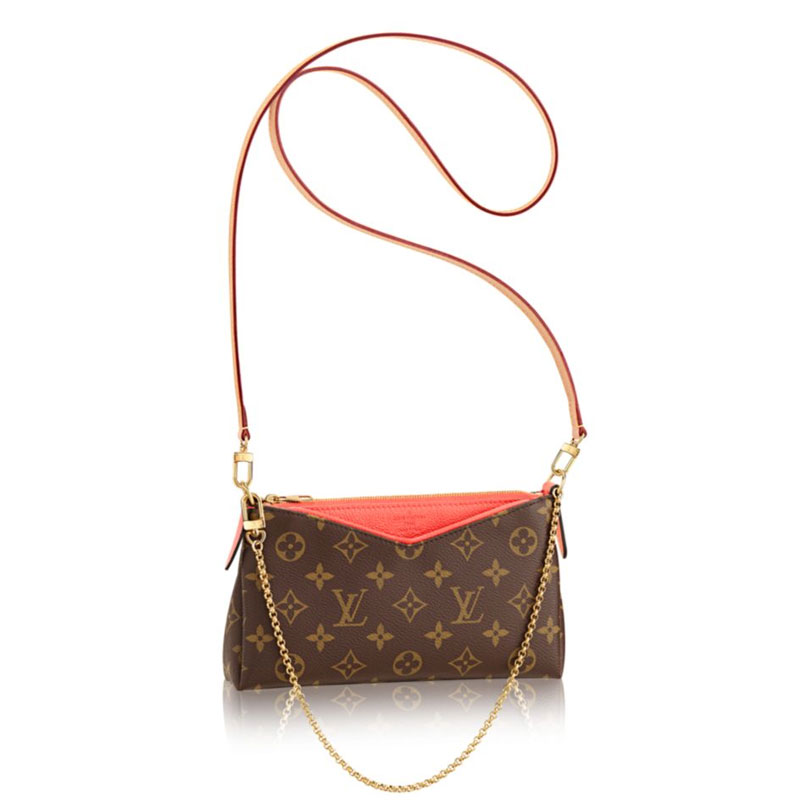 The unique design of Monogram canvas matched with supple grained leather makes this a versatile day-to-night bag with style. It boasts a golden chain for short-shoulder, long-shoulder and cross-body carry!
