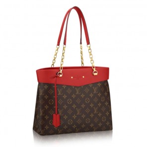 A glamorous addition to the Pallas line, this new shoulder tote offers everything an active modern woman craves. The sleek feminine design combines Monogram canvas with deeply hued calf leather and luxe detailing, witness the gleaming chain and decorative rivets surrounding the embossed “Louis Vuitton Paris” signature. Thanks to an extra-roomy trapeze base, the bag transitions from pleasure to business, accommodating shopping-trip treasures alongside important documents or tablets.