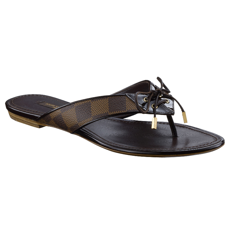 In Damier Canvas trimmed with glossy patent leather, this flat thong is the essence of relaxed summer chic.