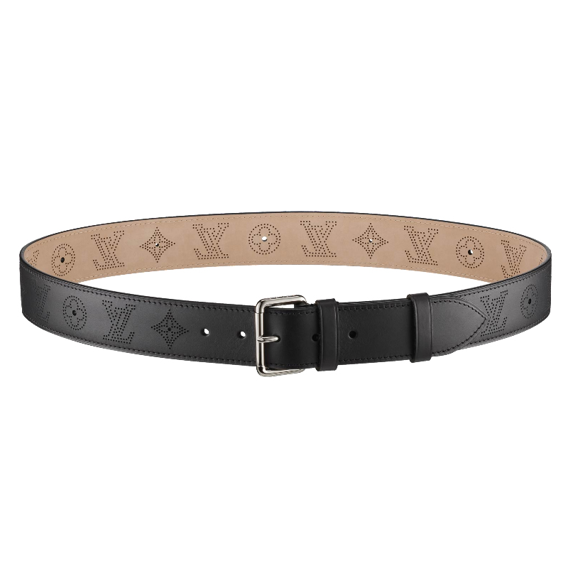 This belt in Louis Vuitton's exceptional, naturally tanned Nomade leather combines elaborate perforations on the strap with a simple metal buckle for a both chic and casual effect.