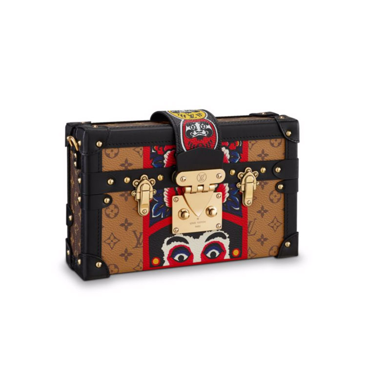 This exclusive Petite Malle makes a bold fashion statement. The colorful, oversized Kabuki stickers – a big story from the Cruise 18 show – are expertly printed on a background of signature Monogram canvas. A collectible model for day-to-evening wear.