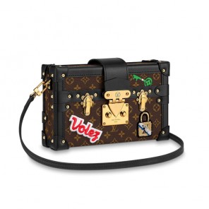 This playful edition of the Petite Malle is offered in Monogram canvas decorated with bold bright patches, featuring modern reinterpretations of historic Louis Vuitton symbols. Trimmed with leather, lined with calfskin, and accented with hardware, this elegant “little trunk” travels seamlessly from day to night.