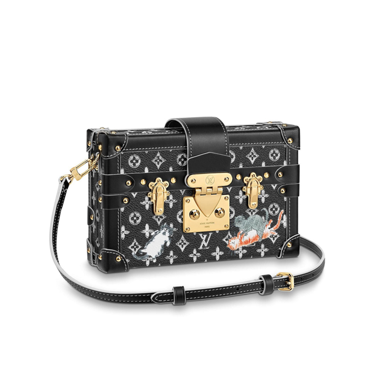 Already one of Louis Vuitton’s cleverest bags, the Petite Malle is simply irresistible with the “Catogram” decoration dreamed up by Nicolas Ghesquière and Grace Coddington for Cruise 2019. Historic Monogram canvas is adorned with charming little cats and dogs. This mini-trunk’s edgy elegance is enhanced with practical features like the removable strap and signature S-lock clasp.