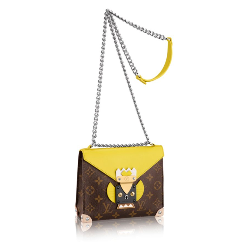 Bold and colorful, the Mask bags drew considerable attention at their debut on the Cruise 2015 runway. Gaston Vuitton, son of the founder, collected African masks. Some were displayed at the legendary 1931 Colonial Exposition in Paris: the tribal motifs of the Mask lock echo those artifacts. Fashioned of Monogram canvas and calfskin in three sophisticated shades, the versatile Mask PM features a chain handle that can be doubled up for an over-the-shoulder carry, or extended to full-length for cross-body wear.