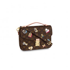 Locks, keys and blossoms – symbols of love and of Louis Vuitton – adorn this Pochette Metis handbag from the season’s Love Lock capsule. The colorful metallic motifs are fused to classic Monogram canvas, creating a unique 3D effect. The romantic emblems make this collectible edition of the compact, versatile Pochette a perfect present for Valentine’s Day.