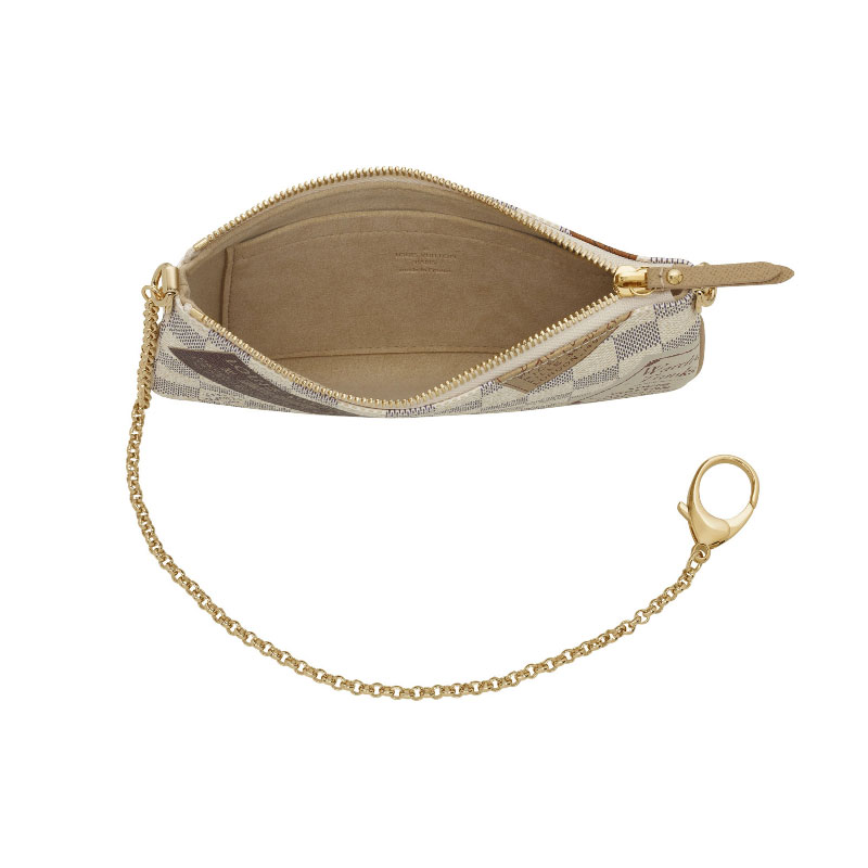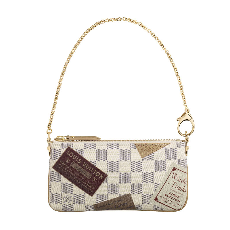 Small but perfectly formed, the Pochette Milla MM not only comes in iconic Damier canvas, it is also decorated with vintage Louis Vuitton trunk labels for that extra feeling of distinction.