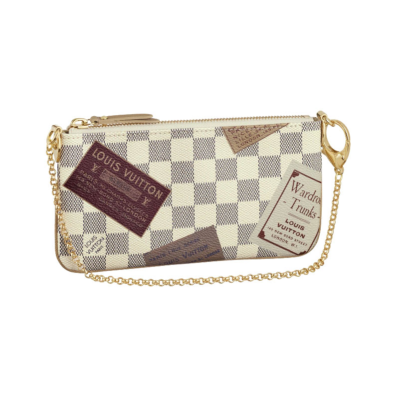 Small but perfectly formed, the Pochette Milla MM not only comes in iconic Damier canvas, it is also decorated with vintage Louis Vuitton trunk labels for that extra feeling of distinction.