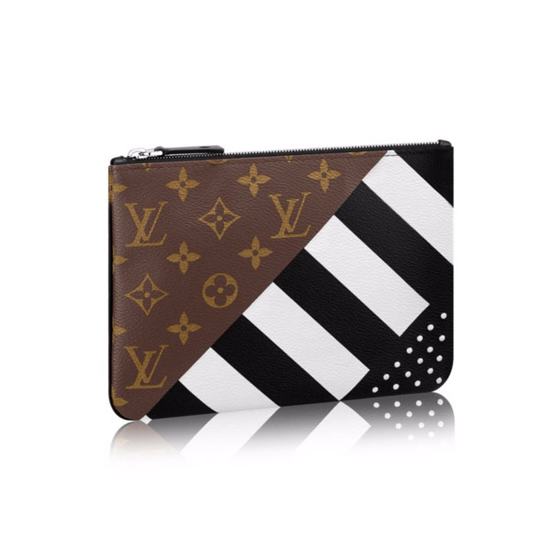 Stylish and versatile, the Pochette Plate can be carried separately or slipped inside another bag. This bold design was inspired by the “heroine jackets” seen at the Spring-Summer 2016 fashion show, and also recalls historic personalized Louis Vuitton trunks.