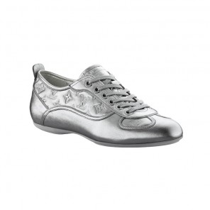 This stylish, feminine sneaker in shimmering metallic leather is discreetly signed with the Monogram pattern embossed on the side.