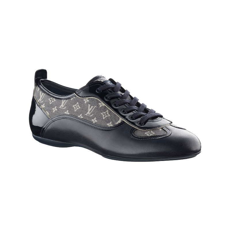 Louis Vuitton's new Monogram Idylle canvas is combined with matte and patent leathers on these streamlined sneakers, which look stylish and feminine.