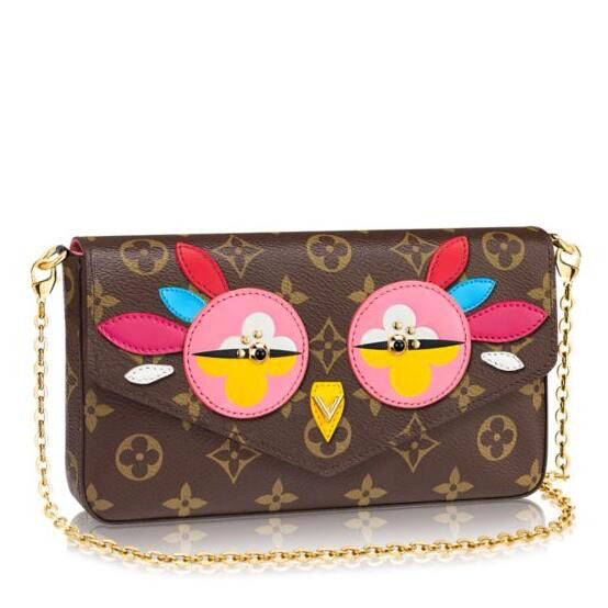 With its two removable interior pockets, the elegant Pochette Felicie in Monogram canvas is the stylish solution to carry and organize your daily essentials. Much more than a wallet, it can be transformed into a glamorous shoulder bag or clutch thanks to its removable golden chain. Composed of Monogram flowers, LV rivets and the golden V signature, the lovely bird character adorning the pouch highlights Louis Vuitton鈥檚 tradition of craftsmanship.