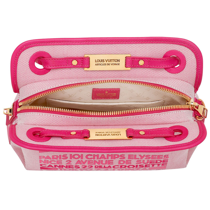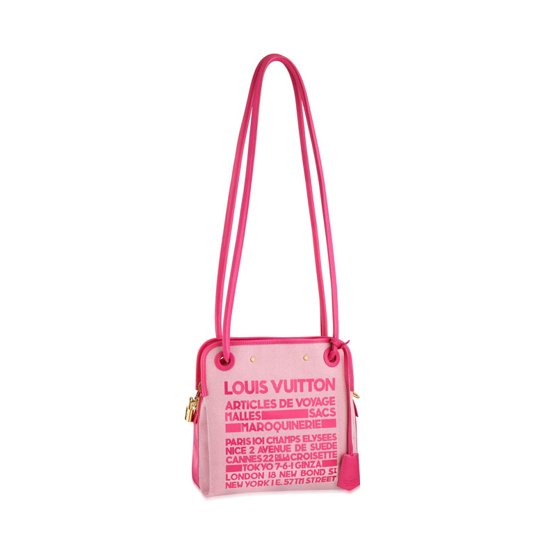 Rider is a compact shoulder bag from the Cruise collection by Marc Jacobs, that easily goes from city to beach, and carries a Louis Vuitton archive signature. It closes securely with a zipper and padlock, and has a matching leather key bell.
