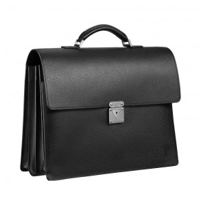 - Taiga leather discreetly stamped with the LV initials, flexible leather handle, Sari canvas lining