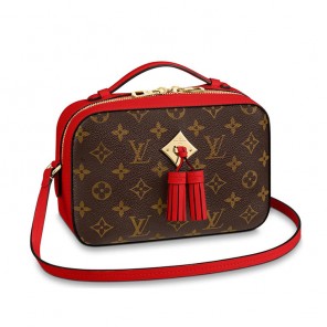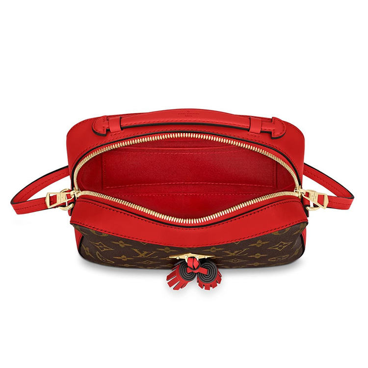 Monogram canvas and smooth calfskin combine in the Saintonge, a compact bag with a youthful vibe. The leather lends contrast and volume to the design, and the tassels are a playful touch. With its top handle and long strap, the bag can be styled in different ways.