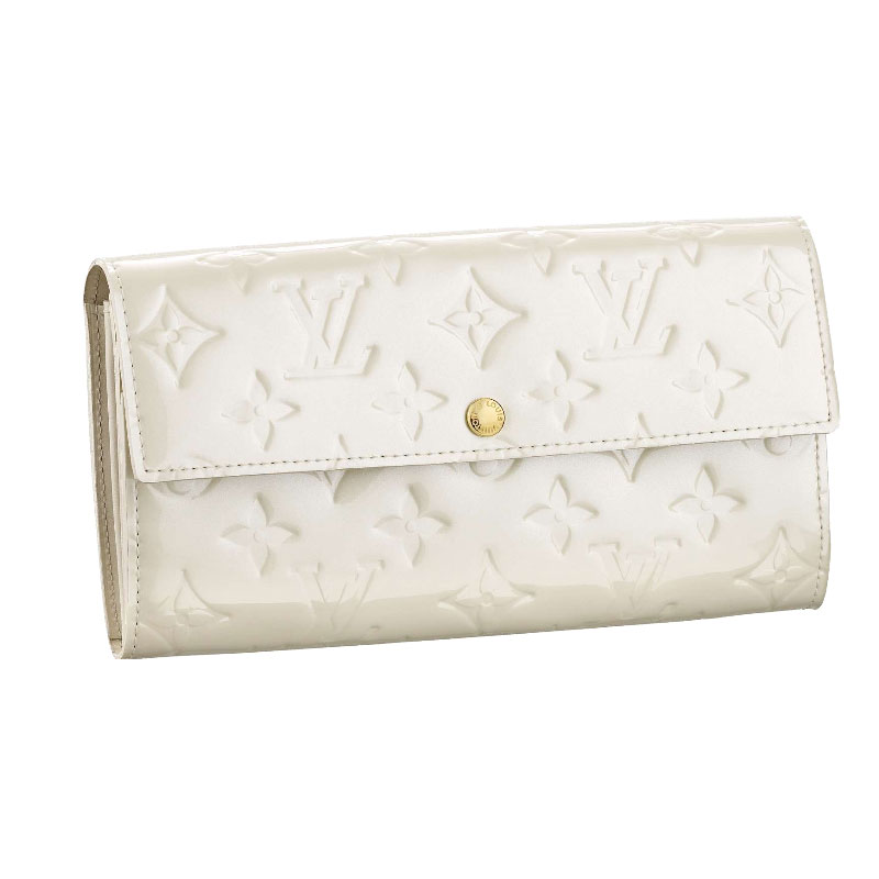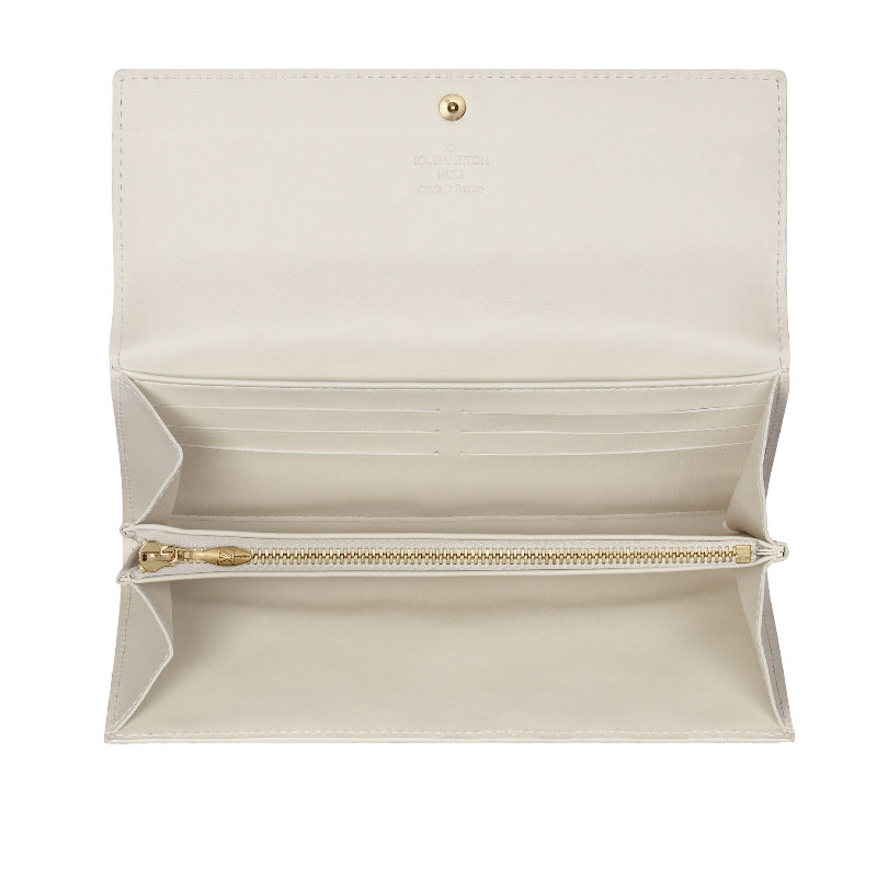 This functional wallet in Monogram Vernis leather offers numerous compartments to hold bills, cards and papers.