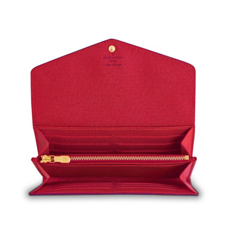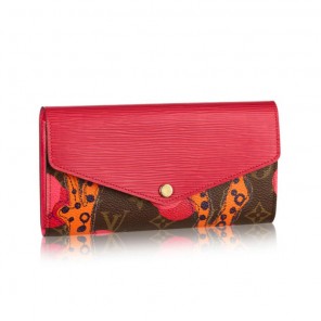 A bold combination of prints inspired by Louis Vuitton's 2015 Cruise collection adorns the Sarah wallet in Monogram canvas. It combines an elegant envelope-style exterior with an ingeniously designed interior featuring a variety of pockets and credit card slots.