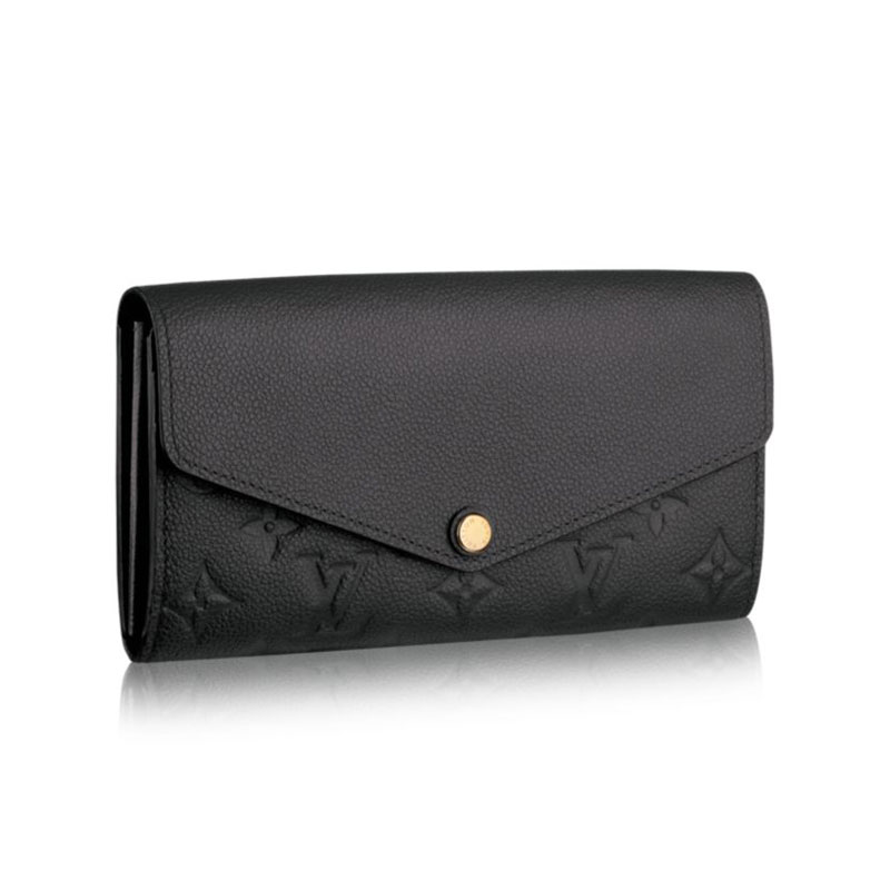 This envelope-style Sarah wallet combines an exterior in discreetly embossed Monogram Empreinte leather with an ingeniously designed interior featuring a variety of pockets and credit card slots.