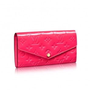 This envelope-style Sarah wallet combines an exterior in discreetly embossed Monogram Vernis leather with an ingeniously designed interior featuring a variety of pockets and credit card slots.