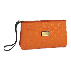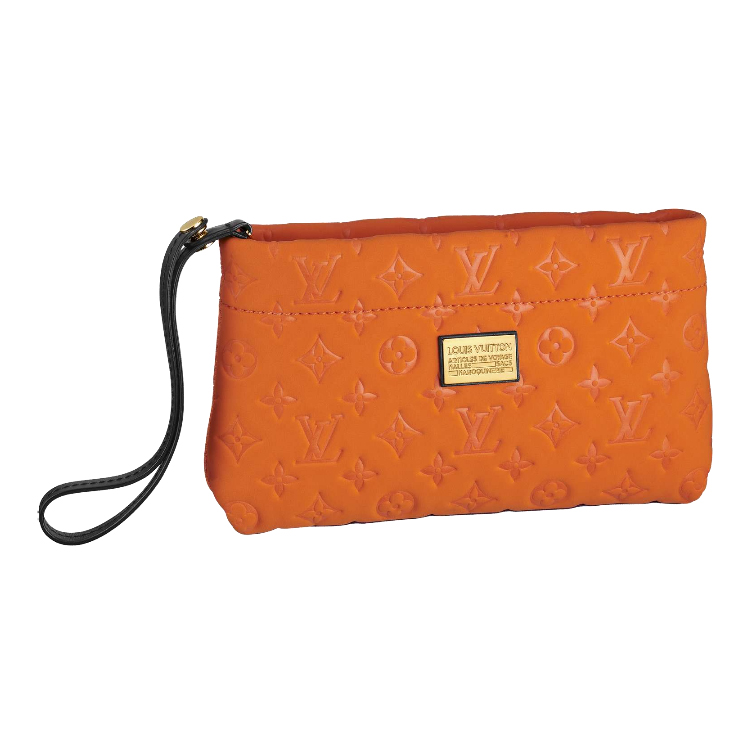 This Scuba clutch from the Cruise collection by Marc Jacobs, in a reinterpreted and innovative neoprene version of Monogram, is functional and lightweight. It is striking with its metallic plaque and is easy to carry thanks to a wrist strap.