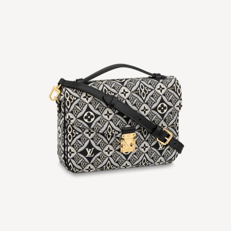 The fashionable Pochette Metis handbag is made from Jacquard Since 1854 textile for Winter 2020. The vintage-inspired woven pattern combines Louis Vuitton symbols with the number 1854, the year the company began business. This go-everywhere bag boasts a chic top handle and a long detachable strap for shoulder or cross-body wear.