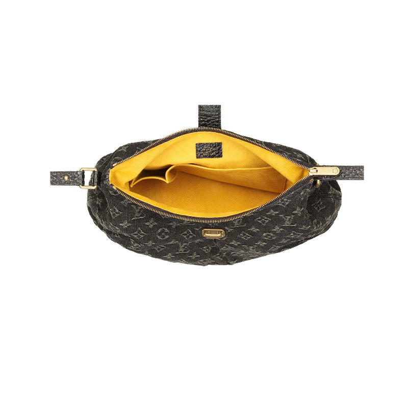 In vintage-look Monogram Denim, the softly pleated Slightly bag is lightweight and body-friendly. It has a three-part shoulder strap, enabling it to be carried on the shoulder and across the body.