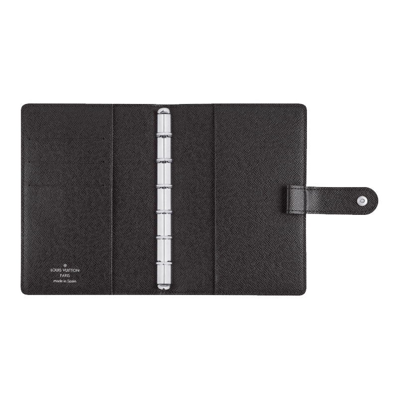 -Grained calf leather lining-Press stud closure-Six-ring binder-Three credit card slots-Agenda, address book and notepad refills all sold separately