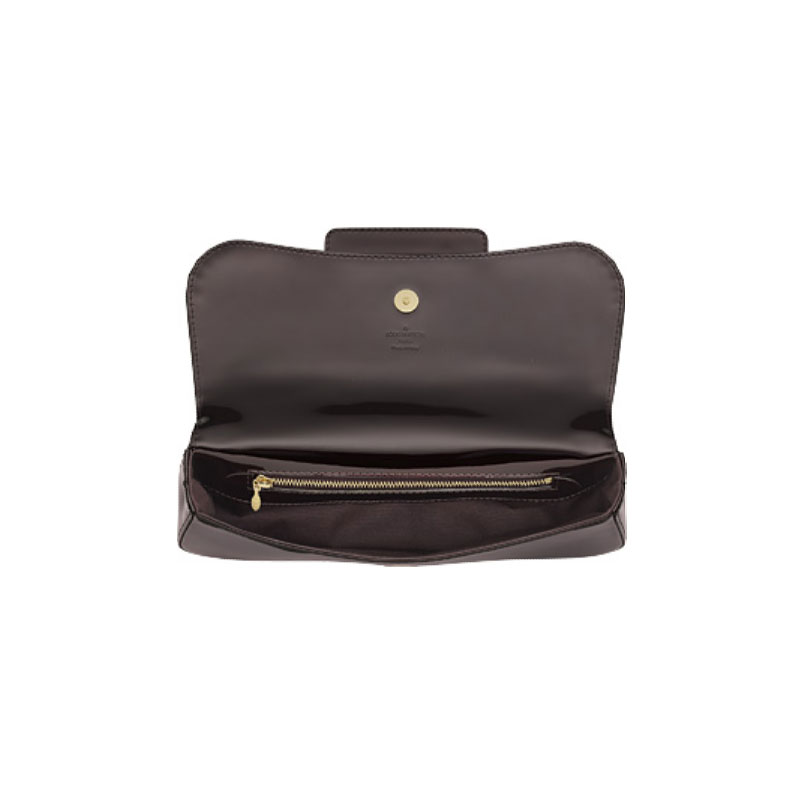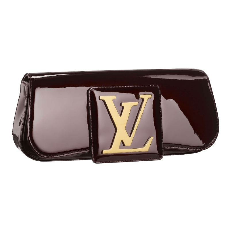 The Sobe clutch is the perfect accessory for day to evening wear. It comes in patent leather with a striking LV signature in large golden brass letters.