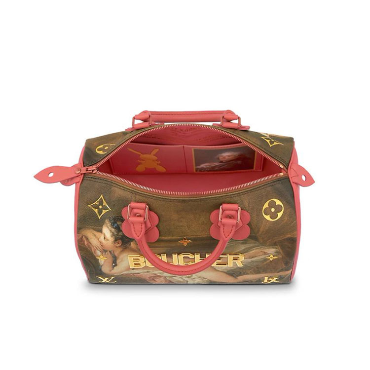 The pure lines of the historical Speedy allows an expression of refinement and femininity through exclusive know-how: gold Monogram serti, flower shapes, reflective metallic letters and colored trimmings. An exclusive leather lining embossed, printed and filled with gold tells you more about this unexpected collaboration.