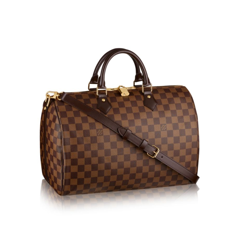 In classic Damier Ebene canvas, the iconic shape of the Speedy Bandouliere 35 is as elegant as ever. A versatile strap allowing for hand, shoulder, or cross-body carry ensures its enduring appeal.