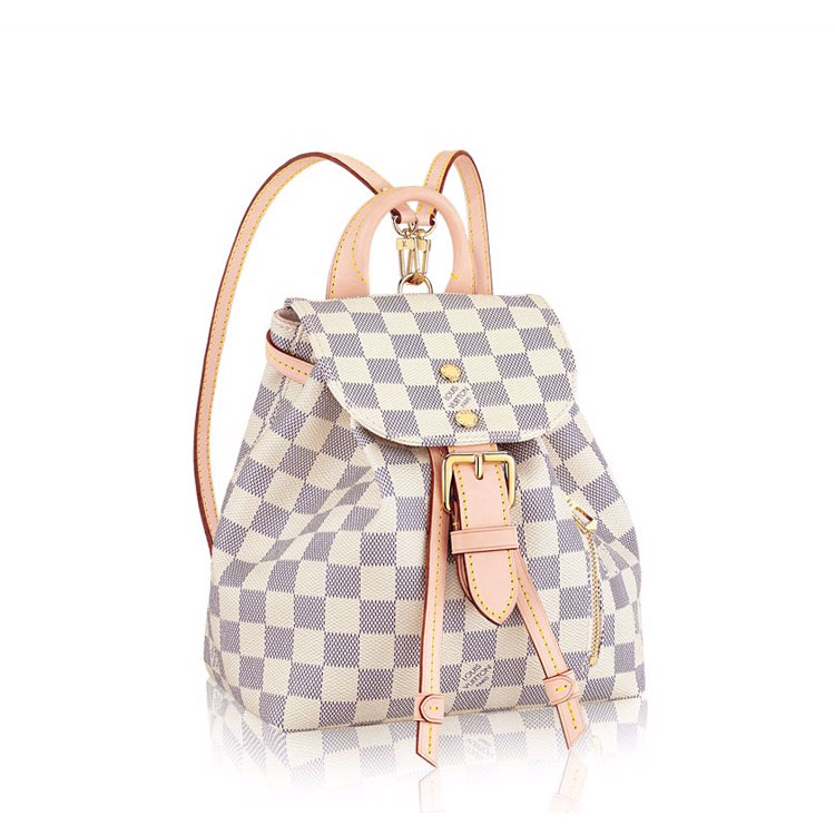 This ultra-feminine mini-backpack with its ultra-cute mini-proportions will wow to the max at the beach and on the street. Casual elegance via Sperone, Corsica with golden Louis Vuitton engraved studs, graceful buckle and stylish front zipped pocket.