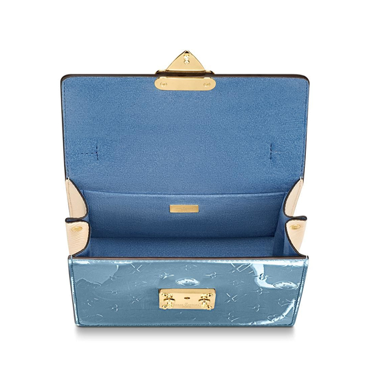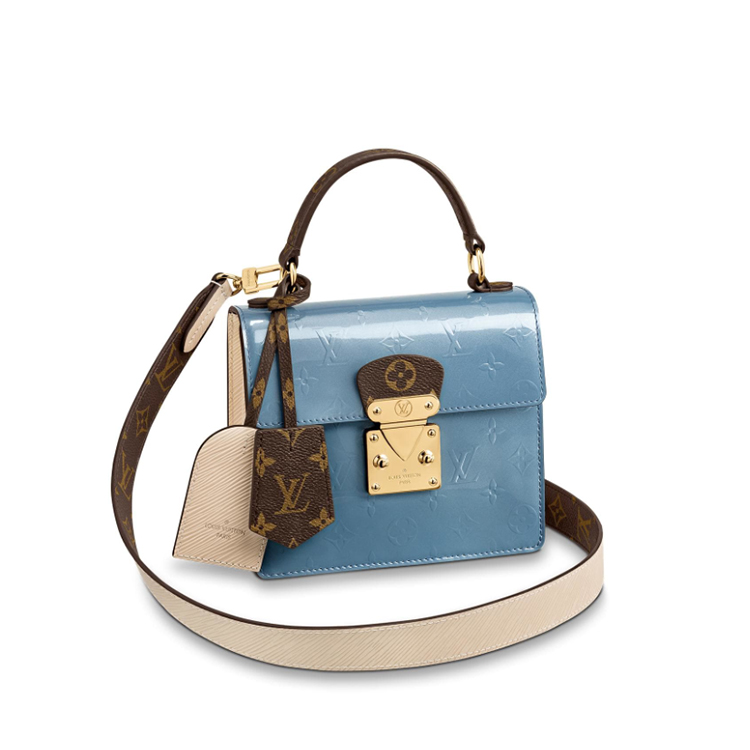 The Spring Street in Monogram Vernis patent leather is a versatile bijou of a handbag. Inspired by a model designed in 1999 by then-artistic director Marc Jacobs, it presents a mix of signature materials in contrasting colors, for a cool, edgy attitude. A top handle and removable strap multiply the carry options for this covetable bag.