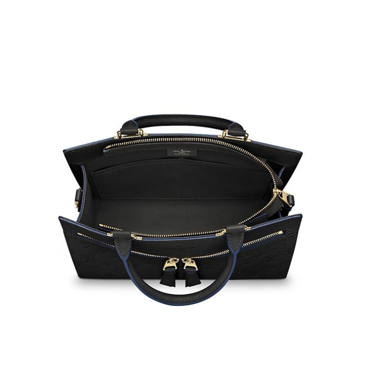 The Zipped Handbag is a practical, on-trend bag made of Monogram Empreinte leather. Four golden studs and a pair of distinctive angled zippers adorn the front, the latter accented with contrasting leather pulls. Two handles and a detachable strap allow for multiple carry styles.