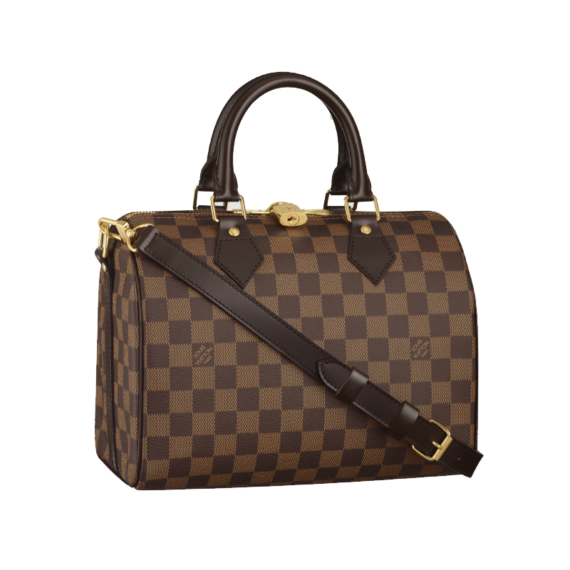 The Speedy 25 with shoulder strap in iconic Damier Ebene canvas encapsulates timeless louis vuitton glamour.It looks effortlessly elegant,whether carried by hand,on the shouder,or worn across the body.