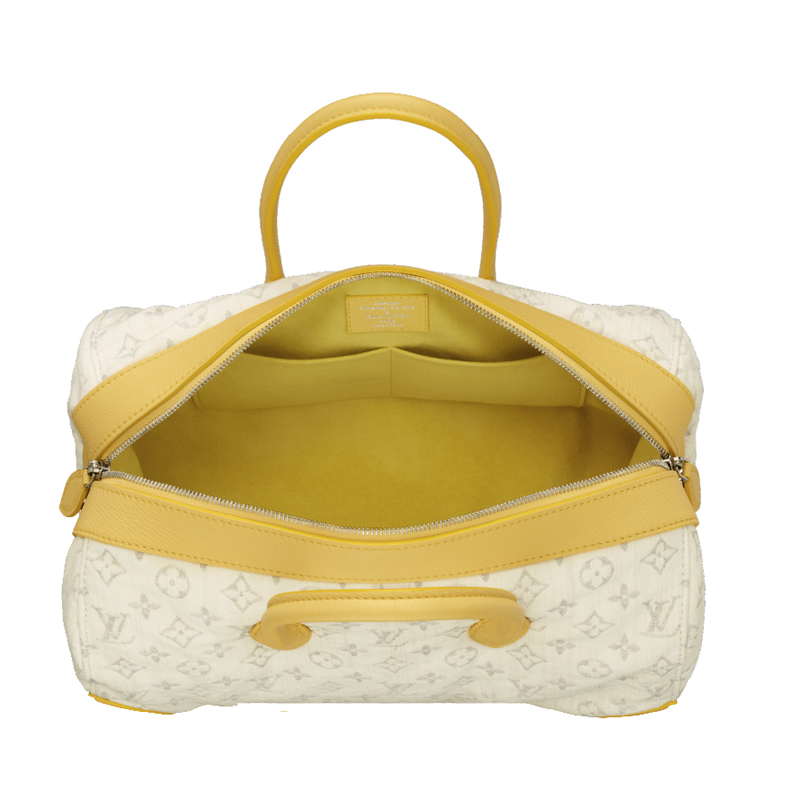 Whether carried by hand,elbow or shoulder,the Speedy Round is a striking design.Its classic shape is softened in Monogram Denim canvas with the iconic pattern highlighted by Lame embroidery.