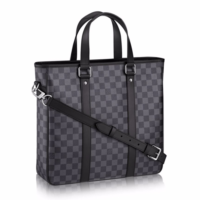 Masculine Damier Graphite is the perfect canvas for the Tadao PM. A highly versatile and sophisticated bag, its practical shape makes it ideal for business and leisure pursuits.