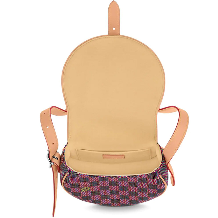 Fashioned from calf leather with a bright pink Monogram LV Pop print, the rounded and compact Tambourin handbag is the perfect everyday bag. The colorful mix of the iconic Monogram and Damier patterns brings an eye-catching aspect to this very functional handbag.