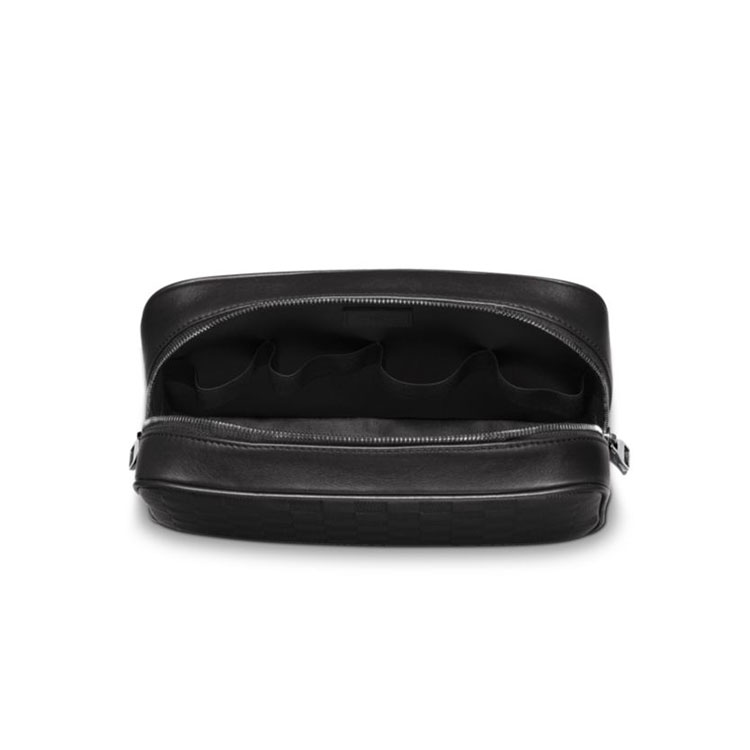 In sumptuous Damier Infini leather, the Toilet Pouch is a luxurious yet understated travel accessory. Its generous interior is elegantly finished with a soft cowhide leather lining.
