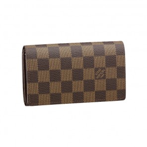 This wallet in Damier canvas holds change in a zipped pocket divided into two compartments. Three interior slots hold credit cards and bills.