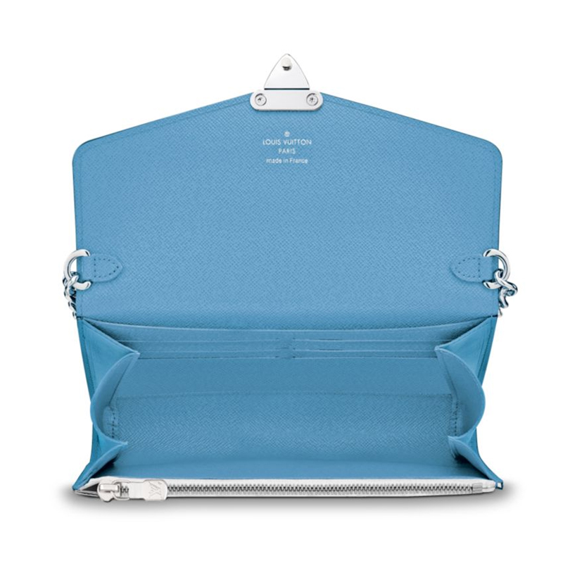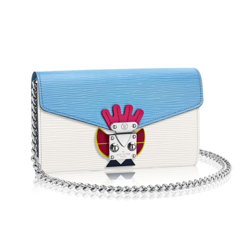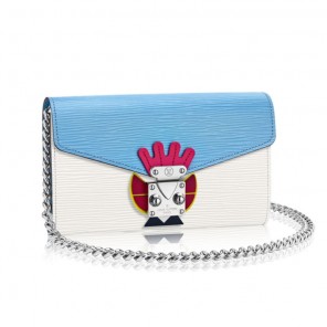 his spacious Chaine Wallet in iconic Epi leather brings fashion-forward look thanks to the Tribal Mask that adorns its closure.