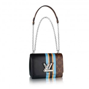 The same bold stripes that emblazoned the “Heroine’s Jackets” – stars of the Spring-Summer 2016 runway – now appear on this collectible version of the Twist, a New Classic of the House. Superbly crafted in smooth printed leather and Monogram canvas, with signature LV twist closure.