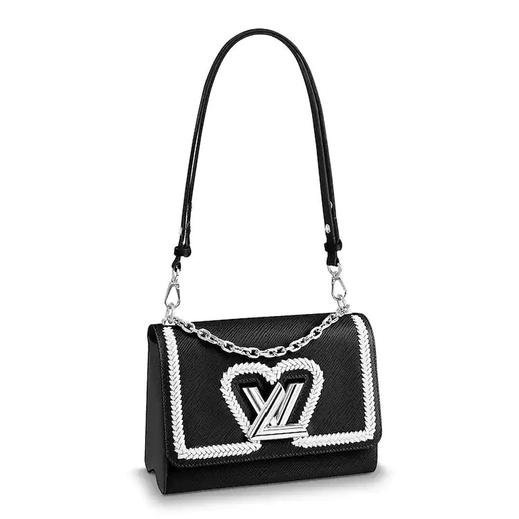 A graphic braided detail outlines the flap of this richly crafted Twist bag. New for Summer ’18, it is made of emblematic Epi leather, with a detachable strap that adjusts to several lengths. Carried by the short chain handle, it is perfect for evening wear.