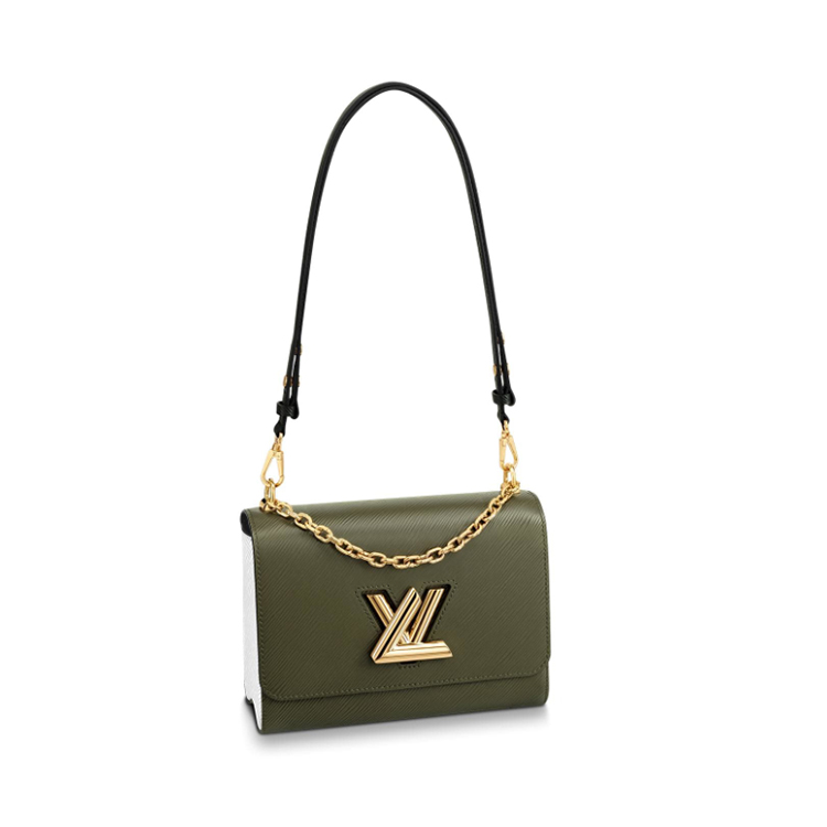 This season, the Twist MM handbag comes in khaki-colored Epi leather with a smart black leather strap and luminous white gussets that add a soft touch to the versatile khaki green. This sophisticated little bag is roomier than it looks, thanks to its clever “wave” base.