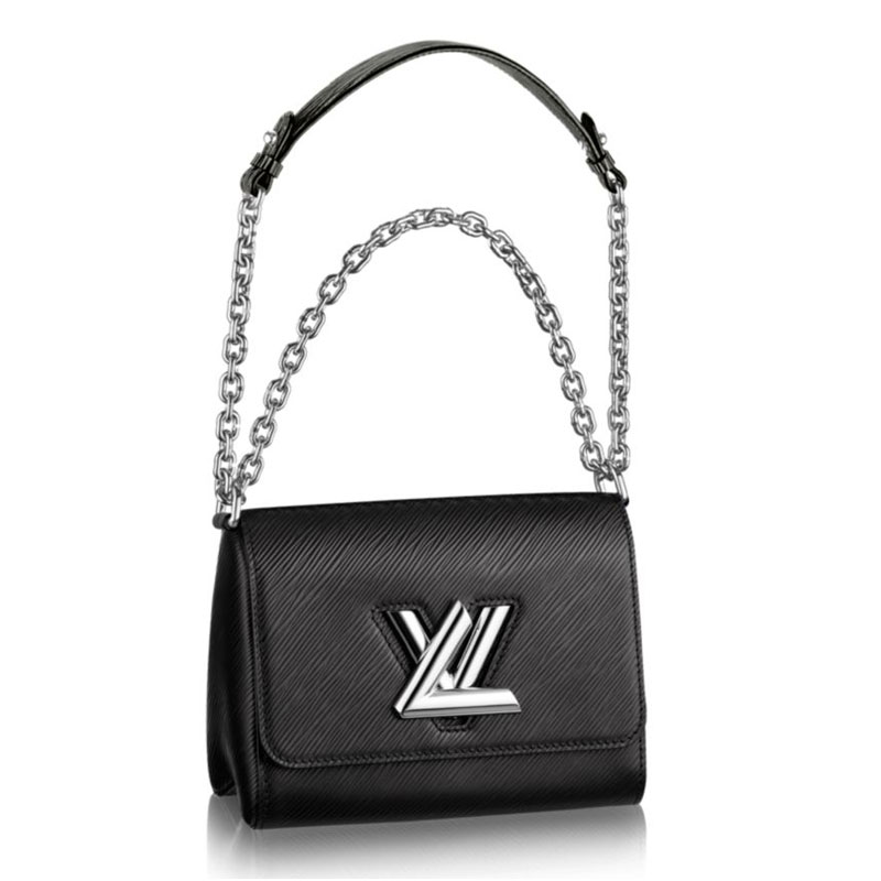 This chic little bag has a secret: it's roomier than it looks. The cleverly designed "wave" base provides extra space for storing necessities. The new Twist features an updated version of the signature turn-lock. Rendered with a 3D bomb茅 effect, the metal closure has a modern, architectural feel. To open the bag, a single smooth twist fits the letter "L" into the "V", with a satisfying click. The convertible chain handle can be worn cross-body or hung gracefully from the shoulder.